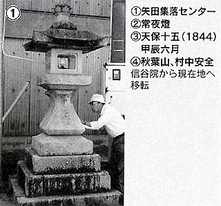 秋葉山にあげる常夜燈は、夜通し村を明かるくし、夜間の通行を助け、火災発生や盗賊の侵入を防ぎ、村内の安全を確保しようというねらいもあって、大型のものが造られた。