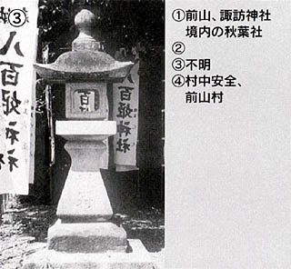 この秋葉信仰は、関東・中部地方一円に伝播していき、江戸時代中期以降には、どこの村にも秋葉山がまつられ、常夜燈が建てられ、秋葉講が組織されていった。