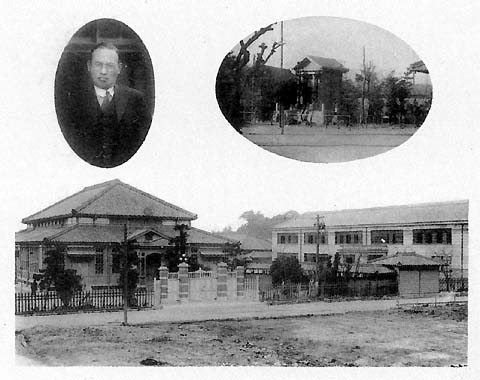 東門から講堂、鉄筋新校舎、奉安庫。
