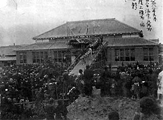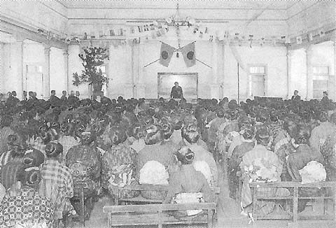 講堂では、入学式、卒業式、唱歌会など、新校舎は高等科になってから、この教室で習いました。