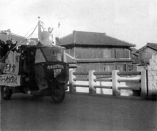 常滑市市制祝賀記念パレード [大野橋上 昭和29年]