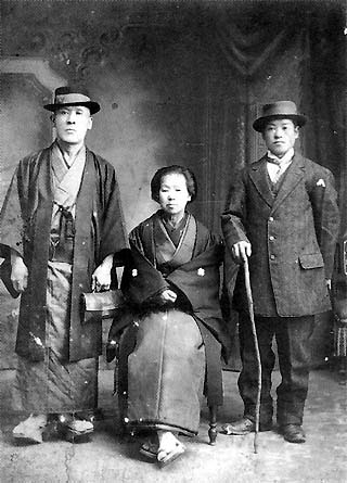 昭和16年12月8日以後の結婚式は縞の着物に黒紋付の羽織となり、燈火管制下の暗い道をお仲人さんに従いて歩いて行ったものでした。その後はモンペになってしまったようです。