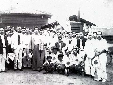 前列左から : 渡辺、杉江次長、小出主事、船井理事長、石川書記長
