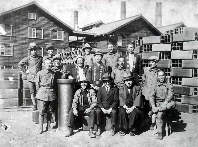 常滑市鯉江新開300番地、伊奈製陶株式会杜(現在、蟹NAX)工場内の電纜管置場で発送関係の人々です。