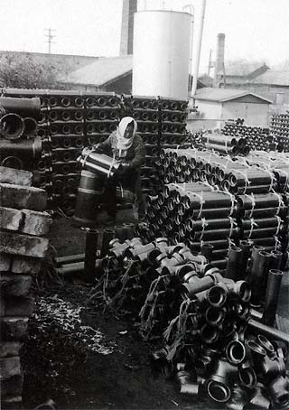 造り納屋から乾燥室へ運ぶ陸橋。下は一般道。