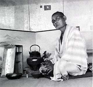 陶山氏は日本酒は愛用しましたが、お茶も又好んで喫しました。朝な夕な自作の茶わんで先1服。板山に仕 事場をかまえてからの写真です。