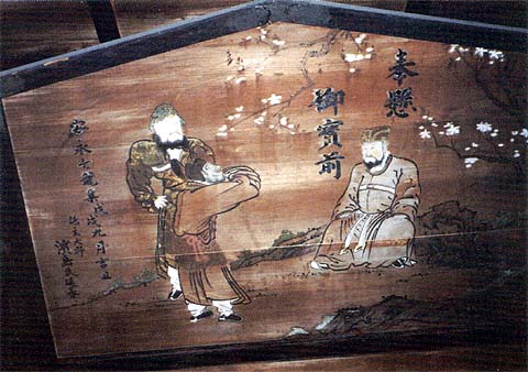大野の豪商濱島伝右衛門と綿屋六兵衛(綿問屋で元百姓)が信仰のため、天明年間に矢田薬師堂を修復し、絵馬を奉納しました。(安永七年九月、1778施主大野八世浜島代延春とある) 常滑市文化財です。