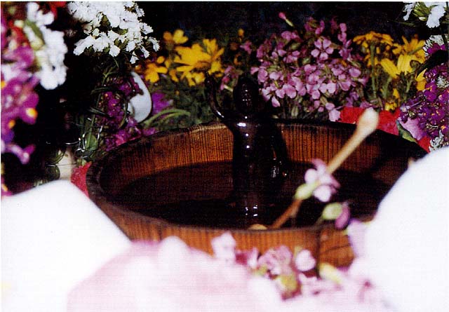 矢田の花祭りは、花のとうと言って100年以上続いています。当日は、学校から帰ると、どこの子もヤカンをさげて甘茶を貰いに行きました。大きな釜に甘茶が沸かしてあり、自分で汲み家に帰り家中でささやかな花祭りをしたものです。