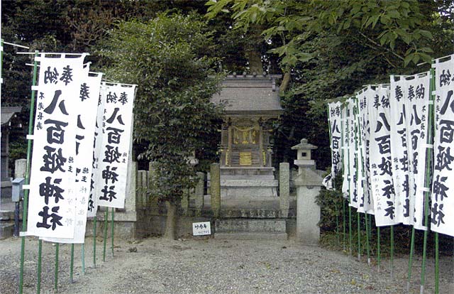 御祭神 八百比丘尼由緒 往古山神祠の地に座し、昭和7年(1932)、八百姫神社として創建されました。人魚伝説のある八百姫神社は背丈程の社殿であり、千木堅魚木(ちぎかつおぎ)もある神明造りで、その側に50cm位の石が2つあり、前の石からは「八百人尼」の字がかろうじて読み取れました。後ろの石は御神体といいます。社殿の軒には人魚の彫刻があります。周りは椿の木が植わり、その後ろはうっそうとした林が続いています。