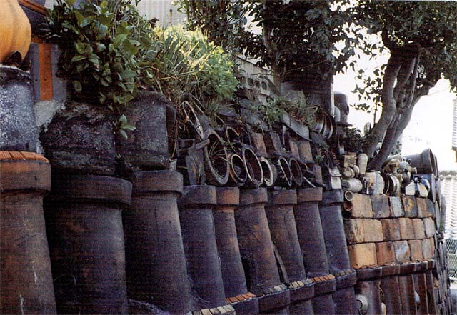 明治、大正時代まだ木型のなかった時代、手造りで土管を造っていたので、胴のふくれた物やへこんだ物で不揃いでした。これは傷物で、市場に出せない物を土止めとして各家庭で使い、廃棄する物はありませんでした。