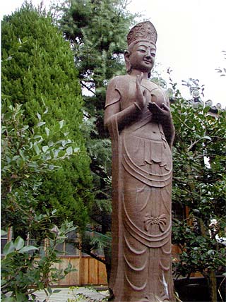 作者は柴山清風氏 昭和33年信者 辻喜代一氏が戦死した息子の霊を慰めるために寄進した。萬国英霊観音像