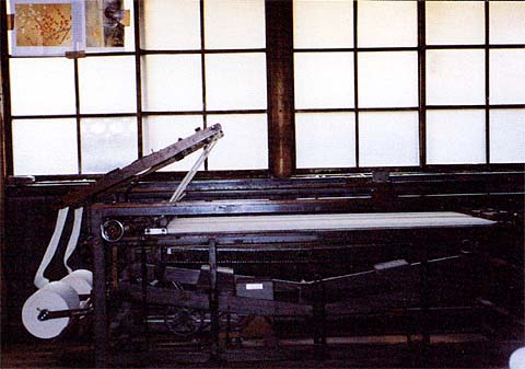 屋根の棟の北側の屋根をガラス窓にして一日中光線を取り入れ、作業をしゃすくしました。(この装置で白木綿のため糸の切れや織りキズが見やすい。)