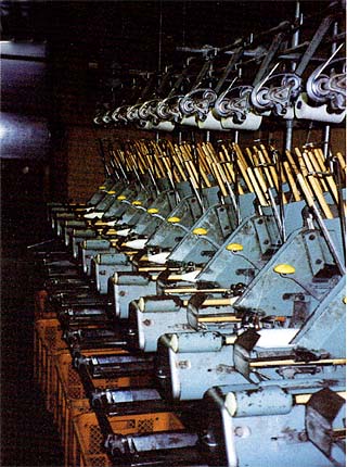 管巻き(緯糸を捲く)織機に仕組んで織る時の横糸を管に巻き取り、舟形の杼に組み入れて織る。人手で行っていた作業は、全部機械がやってくれます。