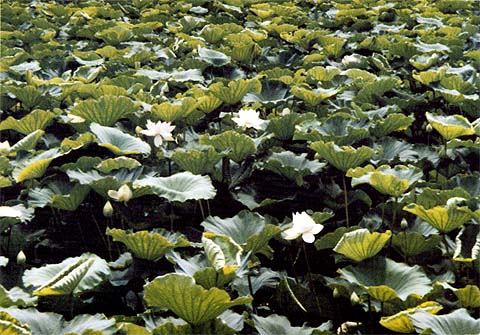 7月の中旬から大池いっぱいに花が咲きます。